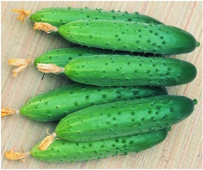 Сорт огурцов Апрельские отличается темно-зелеными плодами. Их длина составляет 15-25 см. Поверхность плодов ребристая с легким пушением. Форма огурцов цилиндрическая. Этот гибрид вместе с сортом «Зозуля» получили первое место на международной выставке по вкусовым качествам. Особенностью огурцов Апрельские является то, что при перезревании они не горчат и не перерастают. Также сорт не склонен к пожелтению. Масса одного плода варьирует в пределах 200-250 г.