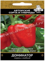 Длительный период плодоношения. Крупные, интенсивно тёмно-красной окраски плоды. Для открытого грунта и пленочных теплиц.Среднеспелый сорт. Период от всходов до начала плодоношения 120-125 дней. Растение высотой 60-70 см. Плод глянцевый, конусовидной формы. Масса 180-200 г. Толщина стенок 6-6,4 мм. Окраска в технической спелости зеленовато-белая, в биологической - темно-красная.