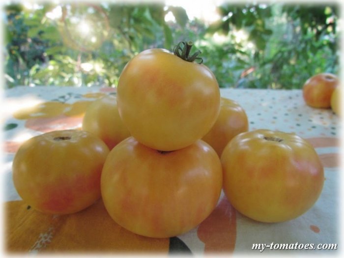Мякоть плотная, не очень сочная. Поэтому такие томаты не подойдут для приготовления пюре или соков. С другой стороны, поскольку мякоть не водянистая, это дает возможность максимально длительного хранения без потери качества и товарного вида (до 60-80 дней).