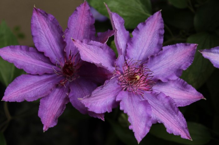 Очень крупные цветки темно-лилово-фиолетовые, к окончанию своего цветения меняют свой окрас на более светлые тона. Пыльники серо-коричнево-фиолетовые. Диаметр цветка от 15-20 до 25 см, образует 6 чашелистиков в одиночной форме, лепестки шириной от 5 до 7,5 см., края волнистые, слегка загнутые вверх. Обильно цветет на побегах прошлого года махровыми и одиночными цветками с мая по июнь, а после обрезки повторное обильное цветение одиночными цветками на побегах текущего года c августа по сентябрь. Быстро нарастает. К условиям освещения нетребователен. Цепляется за опоры листовыми черешками. Особенно хорошо смотрится при выращивании у ограждений, решеток, сеток и других садовых опор. Может плестись по лиственным и хвойным кустарникам, а также полукустарникам.