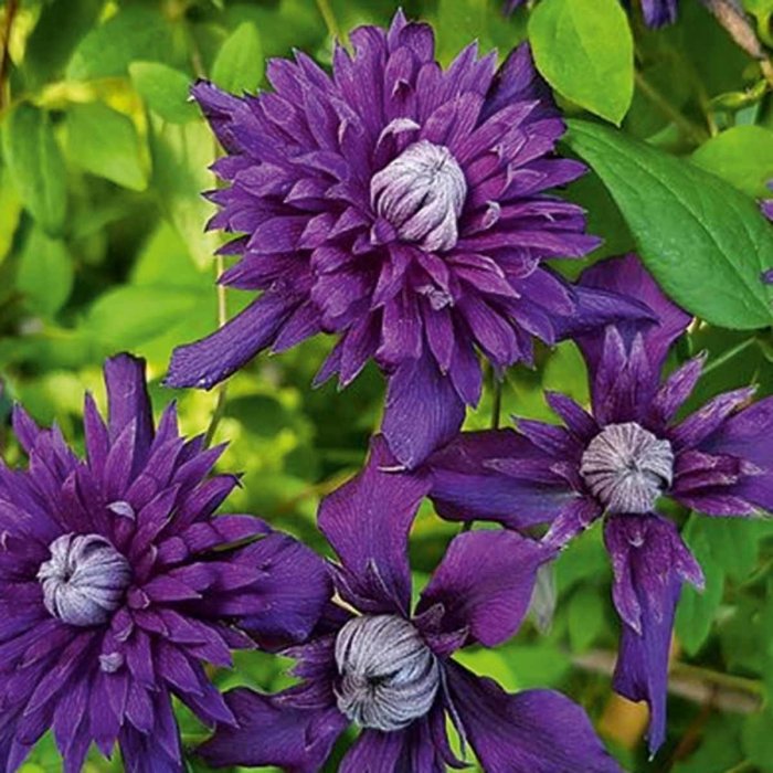 Очень известный сорт с очаровательными, всегда махровыми цветками, благодаря которым растение выглядит в стиле «ретро». Идеально подходит для «исторических» садов. Цветки диаметром 3-6 см, фиолетовые с пепельным оттенком. Лепестки многочисленные, закрученные и сложенные в розетку. Цветёт в конце июня-сентябре на побегах текущего года. Высота 200-250 см. Подходит для выращивания в контейнерах. Особенно рекомендуется для посадки у беседок, обелисков и возле других садовых конструкций. Очаровательно выглядит, переплетаясь с другими растениями, в т.ч. с вьющимися. Красиво выглядит на светлом фоне.