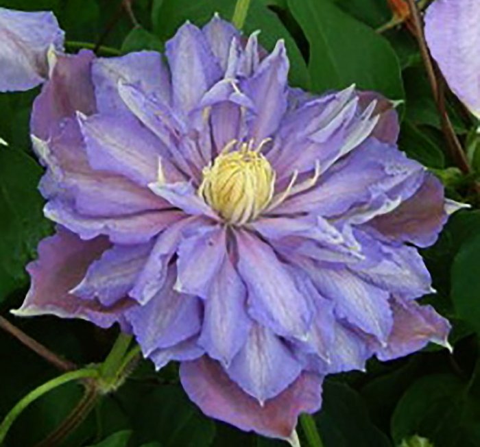 Цветок лилово-розовый, с более темной полосой по центру лепестков и ярко-желтыми тычинками, верхние лепестки более светлые, махровый (на побегах прошлого года), нежно-розовый с более темной полосой по центру лепестков и желтыми тычинками, полностью раскрытый, крупный, простой, 5 - 6 лепестков в одном цветке (на побегах текущего года).Цветение обильное.