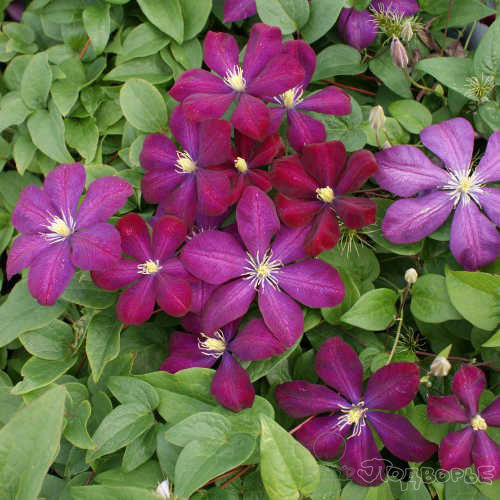 Клематис Волюцея (3) - сильная группа обрезки (3), плети легко направляются, 2,0 метра. Цветение проходит на побегах нового сезона, цветок немахровый, фиолетовый, красный, тычинки бежевые.
