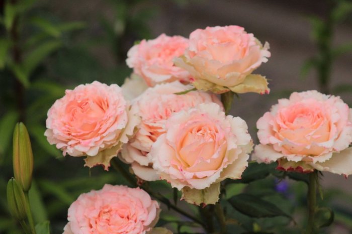 Куст компактный, элегантный, высотой 55-90 см (в благоприятных условиях вырастает до 1,2 м) и диаметром до 60-80 см. Побеги прямостоячие, хорошо развитые, среднеоблиственные, с очень незначительным количеством шипов. Листья плотные, каплевидные, среднего размера с зазубренными краями. Окрашены в темный зеленый цвет. Цветение Обильное, пышное и практически непрерывное цветение кустарника наблюдается с конца весны до начала октября. Бутоны бокаловидные, плотные, хорошо заполненные, появляются преимущественно по одному на концах длинных цветоносов, раскрываются очень медленно. Цветы густомахровые, состоят из 25-40 бархатистых лепестков с гофрированными краями. В стадии полного роспуска приобретают чашевидную форму и достигают 8-10 см в диаметре (до 12 см). Куст хорошо разрастается и быстро набирает бутоны после обрезки увядающих цветов.