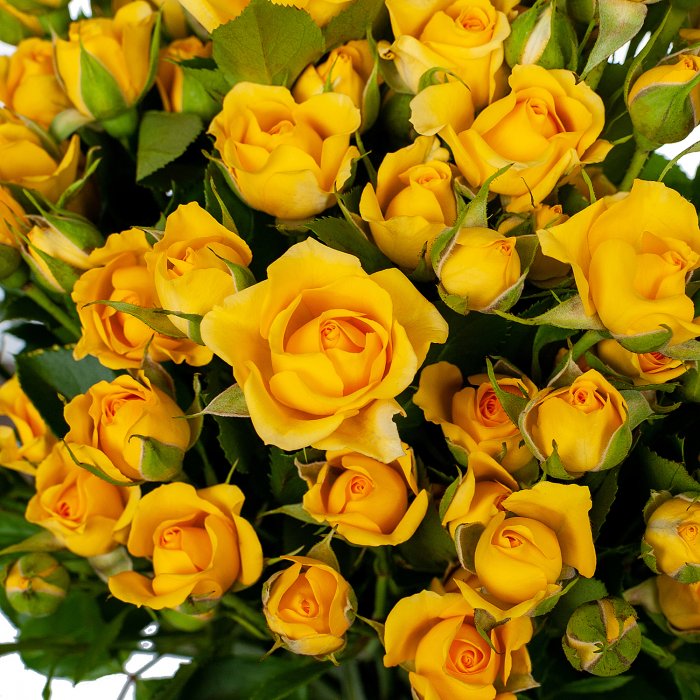 Розы спрей естественным образом формируют аккуратный кустик правильной формы. В саду эффектнее всего они смотрятся посаженные группой из 3-5, а то и больше, растений. Часто розы спрей путают с мини-розами. Но все же отличие есть – у миниатюрных роз кустик гораздо ниже - 30-40 см. В России спрей-розы показали себя абсолютно неприхотливыми. Они цветут практически постоянно, весь сезон на побегах текущего года, поэтому обрезку лучше проводить весной. Уход такой же, как и за остальными розами: поливы, подкормки, рыхления, удаление увядших цветков. Много слышно отзывов об их безупречной перезимовке, но всё же в Сибири для лучшей перезимовки рекомендуем устраивать для роз спрей лёгкое укрытие.