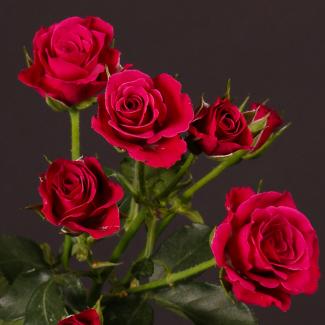 Роза спрей. Отличается удивительно сочным малиновым оттенком, который делает любую цветочную композицию с ее участием яркой и эффектной. Длина стеблей составляет примерно 60-70 сантиметров. В срезанном виде при правильном уходе могут сохранять свежесть до двух недель. Цветы обладают лёгким, ненавящивым ароматом. Абсолютно неприхотливы в уходе.