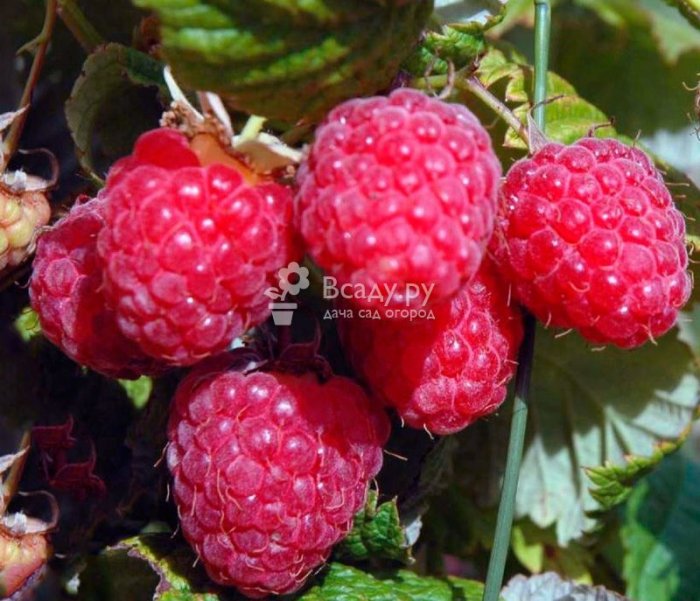 У малины имеются довольно мощные стебли, способные противостоять даже сильным порывам ветра. При создании оптимальных условий содержания, куст достигает 3 м в высоту. Ягоды крупные, достигают массы 12 г. При хорошей плодоносности с одного куста можно собрать до 16 кг малины. Ягоды имеют коническую форму. При достижении стадии технической спелости они становятся сладкими с кисловатым привкусом. Содержат витамины C, K, B6.